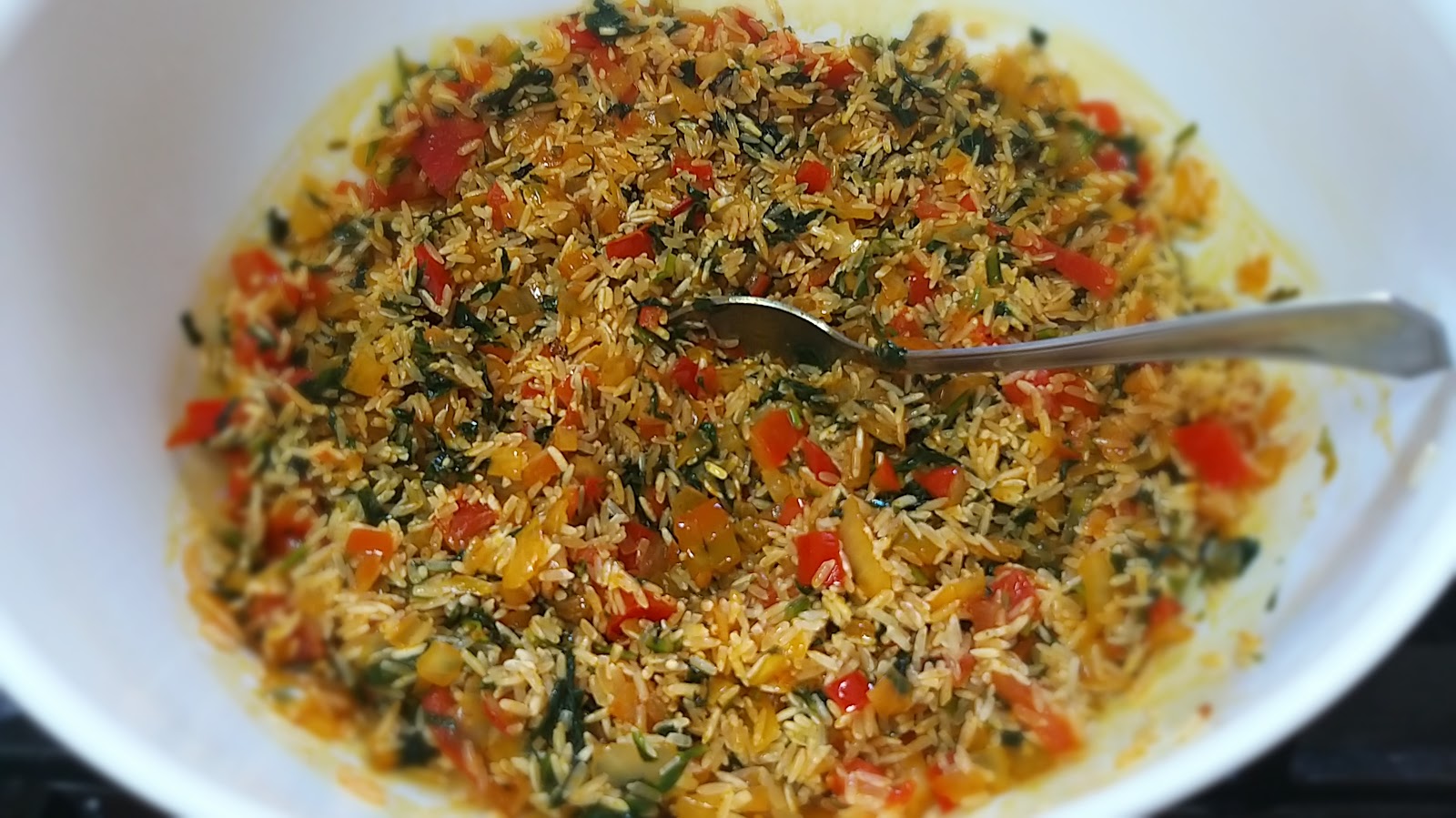- אני מבשלת מעט את המילוי של הפלפלים וזאת כדי שהירקות יאבדו מהנוזלים ולאחר הבישול, הפלפלים ישארו מוצקים כי המילוי כמעט מוכן.